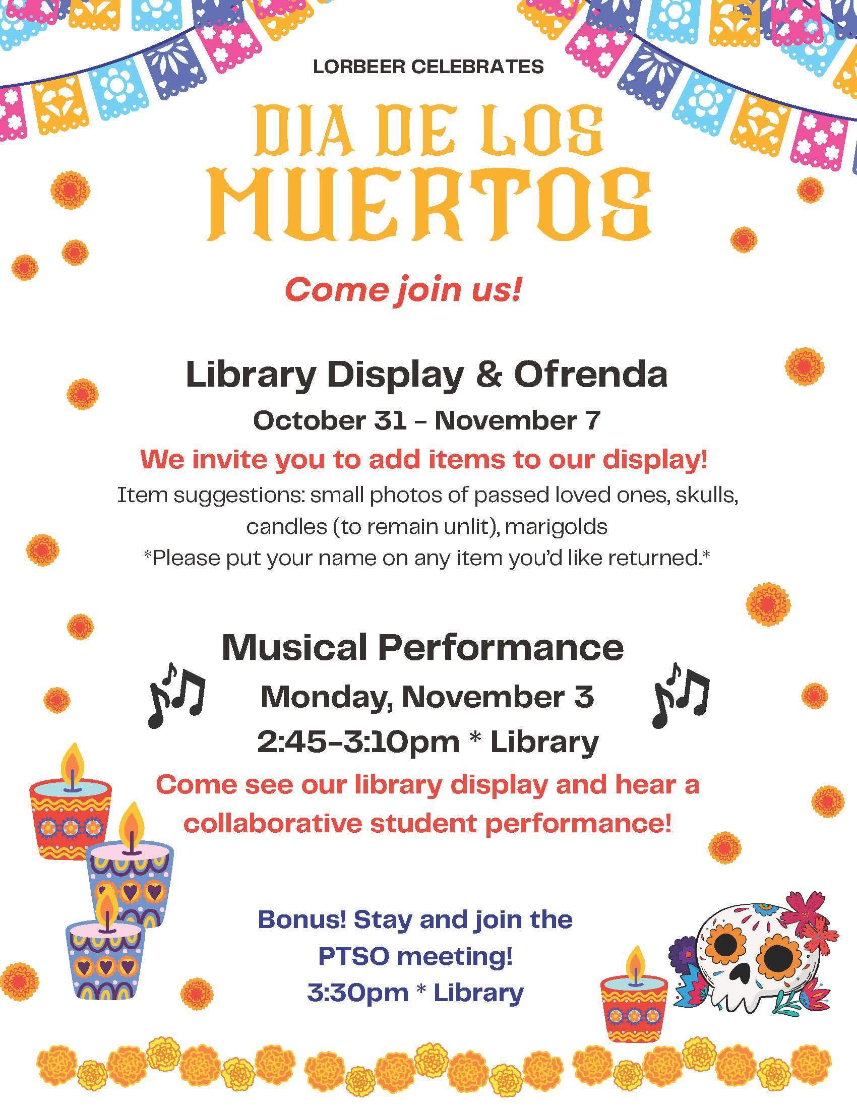 Lorbeer Celebrates Dia De Los Muertos We invite you to add items to the display - see flyer for details. Attached Files Dia de los Muertos flyer -Lorbeer 11.3.25.pdf